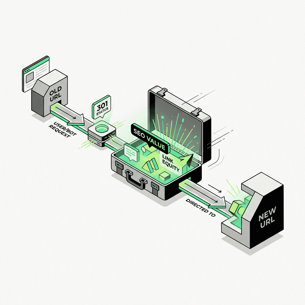 301 redirects are permanent server-side instructions that pass link equity and ranking signals from old URLs to new ones—essential for SEO during URL changes and site migrations.