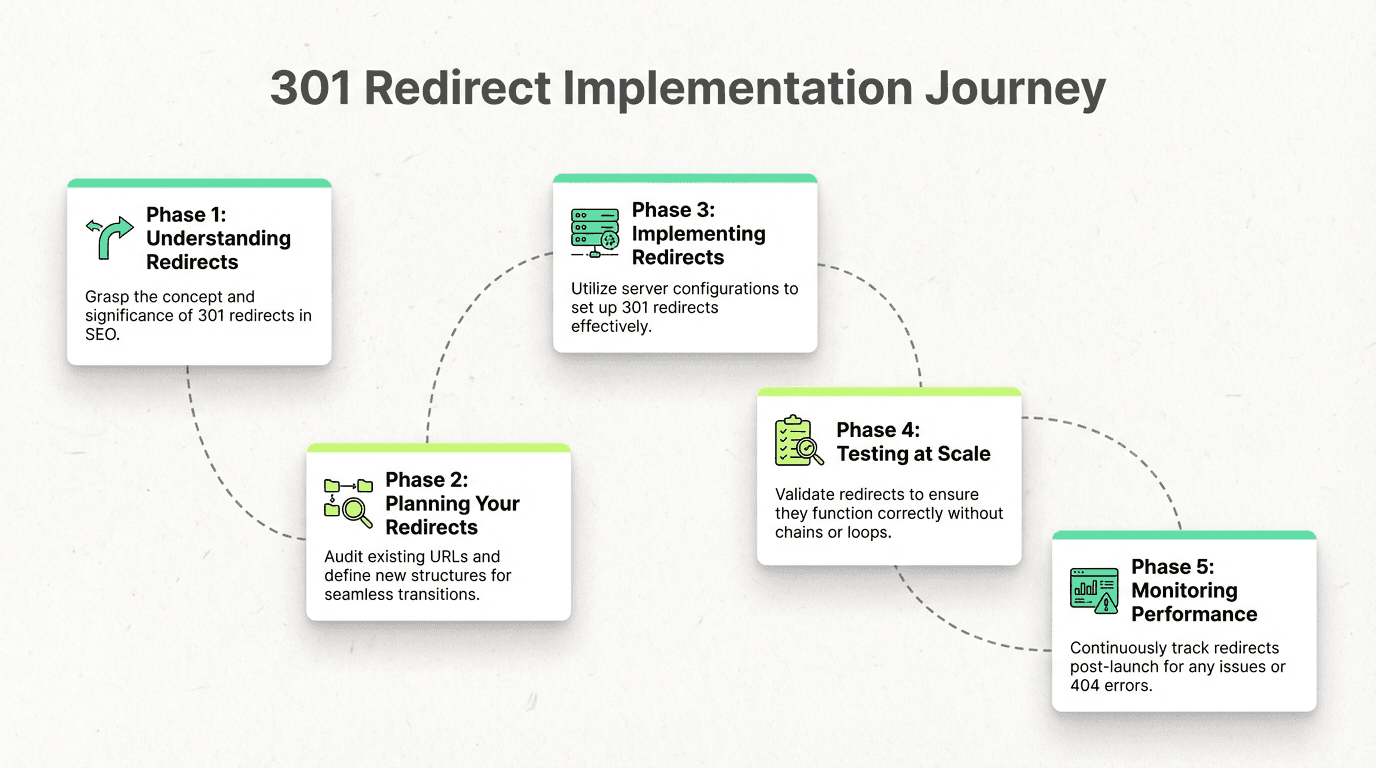 In this comprehensive guide, we'll walk through everything you need to know about 301 redirects: when to use them versus a 302 redirect, how to implement 301 redirect htaccess rules on your server, how to avoid redirect chains and redirect loops, and why redirect mapping and validation have become mission-critical for modern SEO. Whether you're planning a site migration, consolidating content, or cleaning up years of technical debt, this article will equip you with the tactical steps and tools—including ai tools for marketing and SEO automation tools—to execute flawlessly.