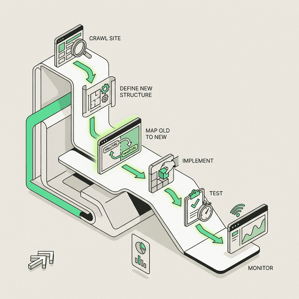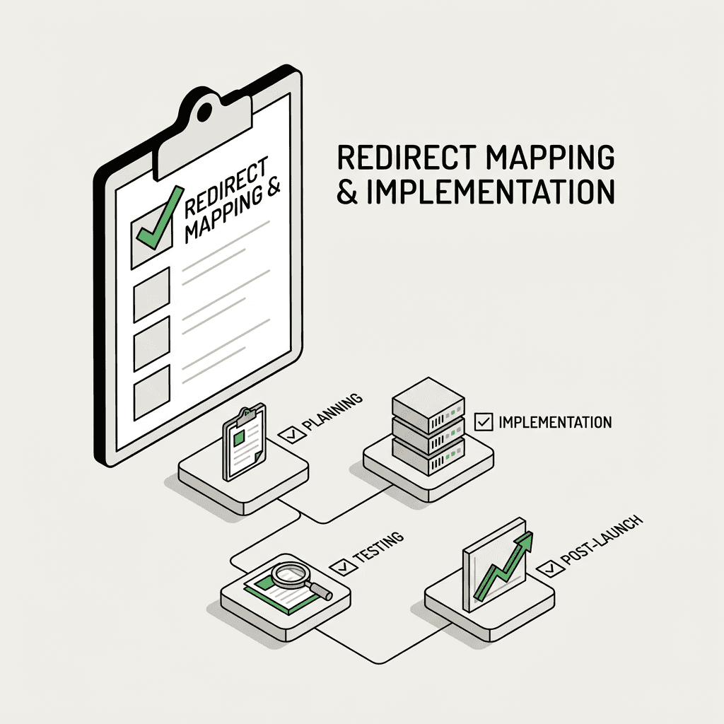 Redirect mapping is the tactical blueprint for migrations: crawl your site, match old URLs to new, implement server-side rules, and test at scale before launch.