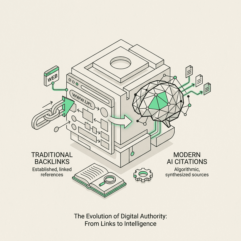 In the old model, backlinks were votes. The more authoritative sites that linked to you, the more Google trusted you. The optimization strategy was clear: earn links, build domain authority, rank higher.