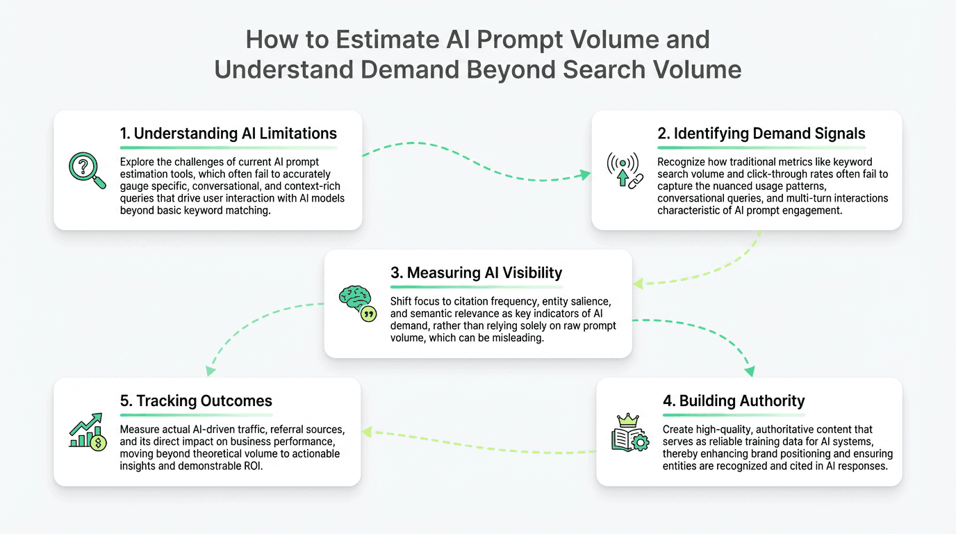 Your board wants to know: "What's our AI search strategy?" Your team is asking: "How do we measure this?" And right on cue, a dozen vendors are selling you "AI prompt volume estimation" - essentially ai visibility tools - the supposed equivalent of keyword search volume for ChatGPT, Perplexity, and Gemini.