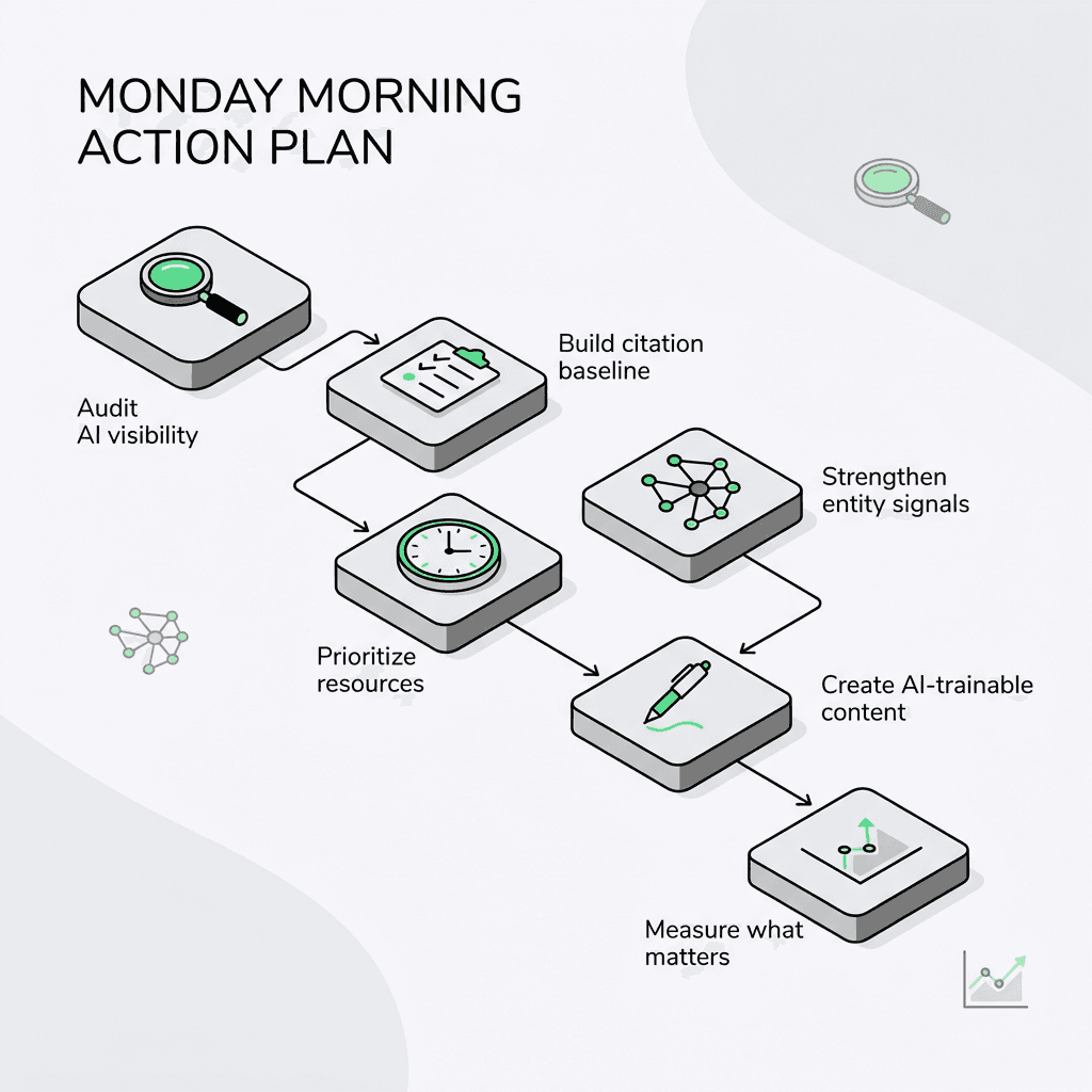 Goal: Increase share of citations in your category. If competitors appear in 60% of relevant AI responses and you appear in 8%, that's your real metric.