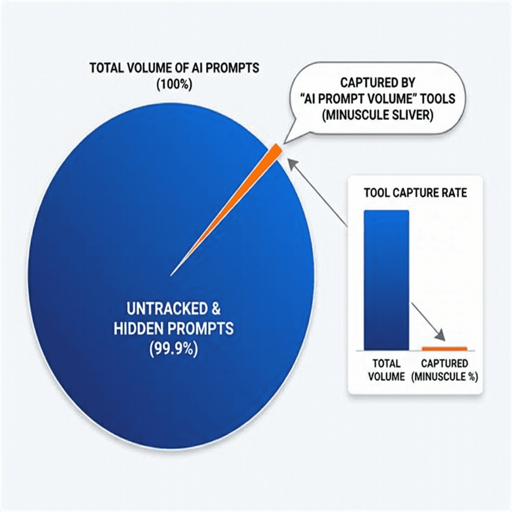 Let's be generous and assume a leading AI prompt volume tool captures 50 million prompts per month. Here's the reality: