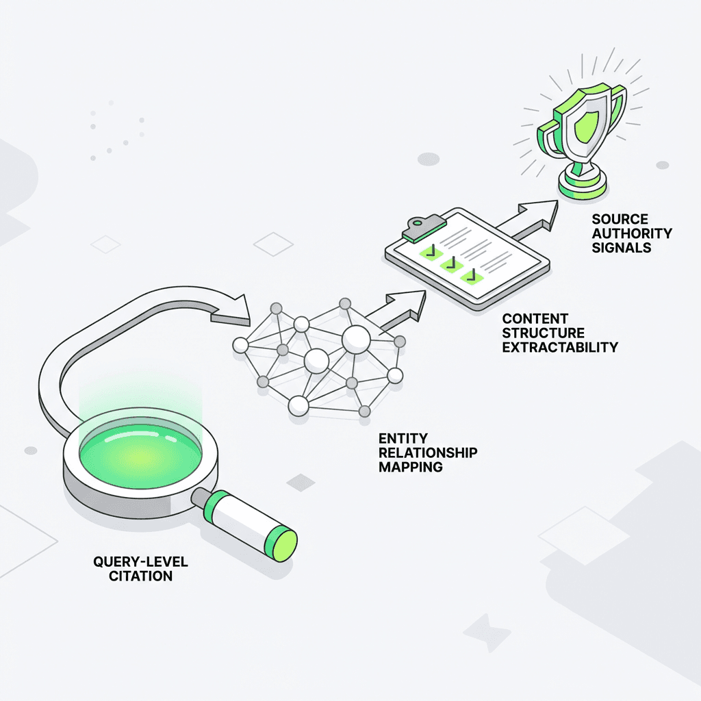 The problem: Traditional authority signals (backlinks, domain authority) don't translate 1:1 to AI citation authority