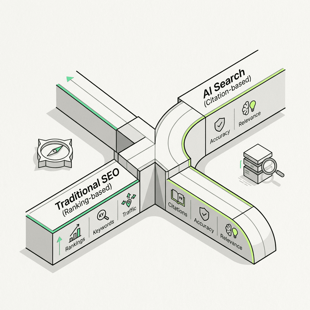 Search has forked into two paradigms: ranking-based (traditional SEO) and citation-based (AI search). Most companies only track one.