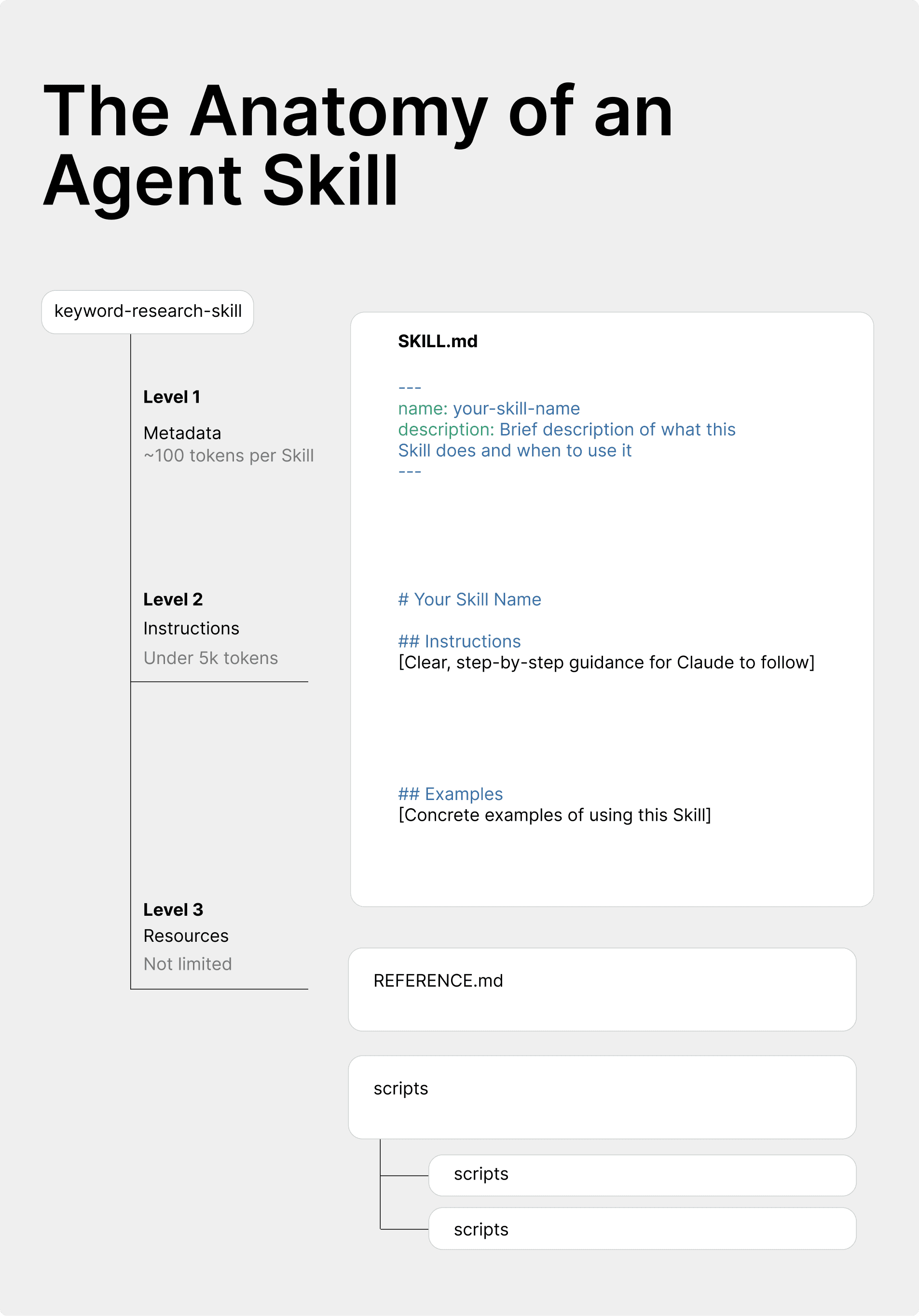 This is the level where the core of the Skill’s logic gets used — and it doesn’t load until you actually need it.