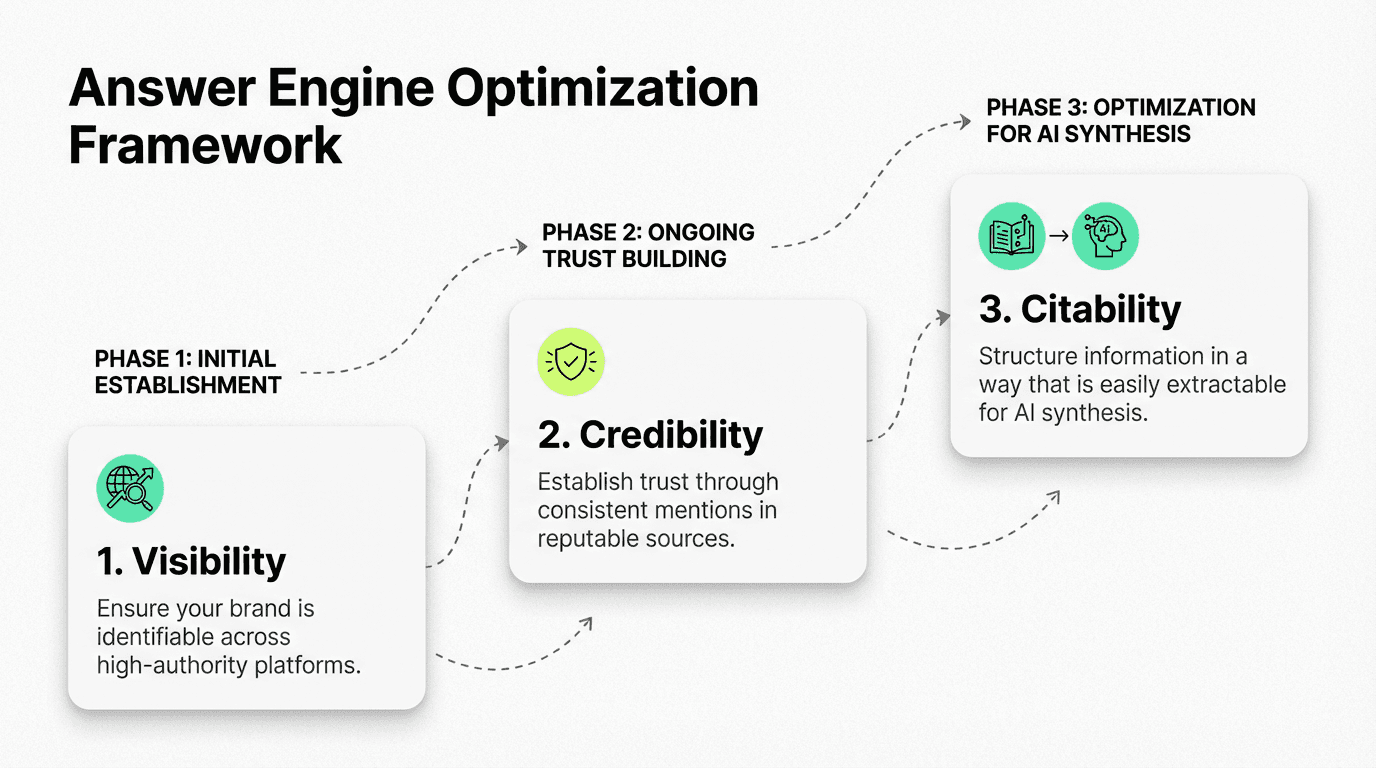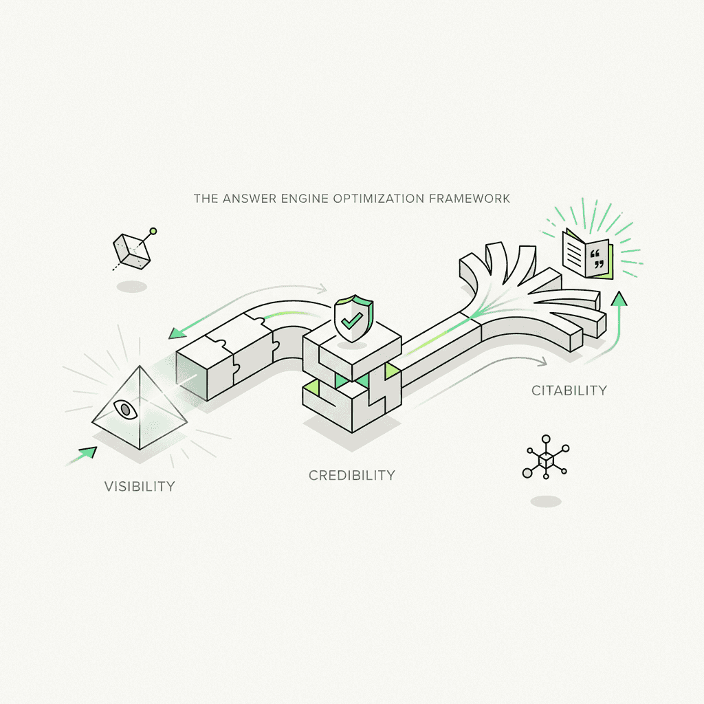 The Answer Engine Optimization Framework: Visibility → Credibility → Citability