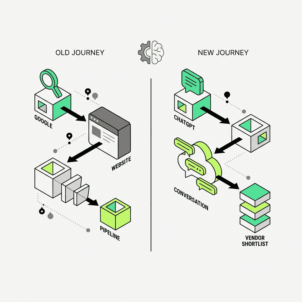 Traffic held steady, but pipeline slowed. Sales teams kept hearing the same thing from prospects: "We're already looking at three other tools." When asked where they found those tools, the answer wasn't Google. It wasn't review sites. It was ChatGPT.