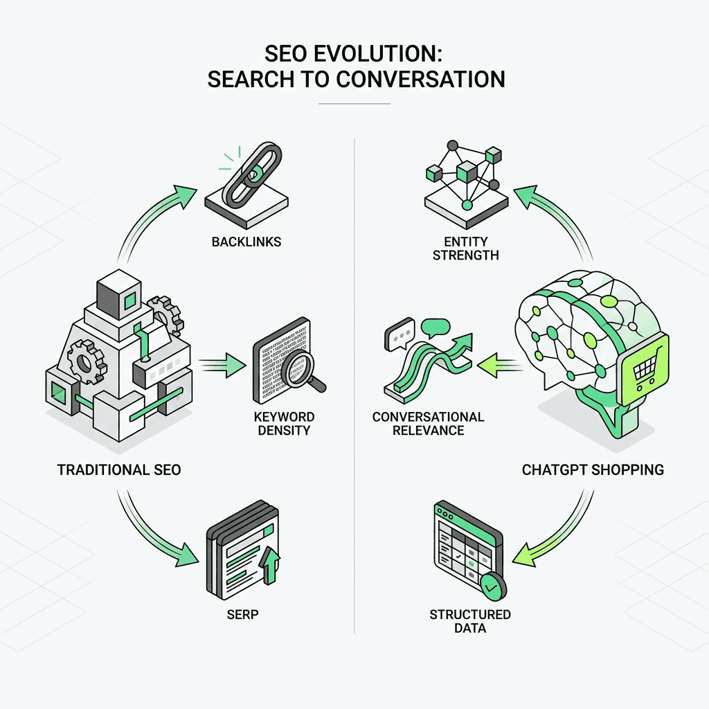 Does traditional SEO (backlinks and keyword density) help with ChatGPT Shopping?