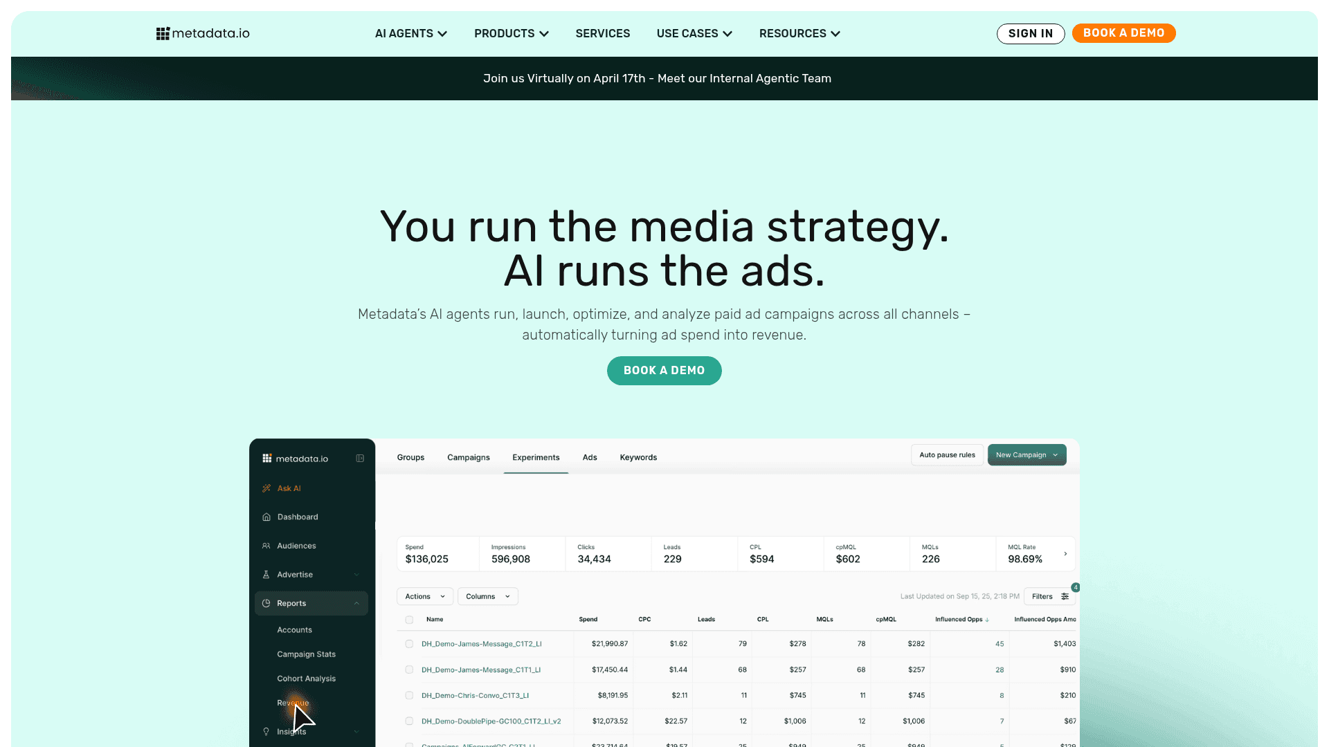 Metadata.io is a demand generation platform built for b2b marketers looking to automate and optimize paid marketing campaigns across channels like LinkedIn, Google, and Meta with ai paid media automation. Its primary differentiator is automating the heavy lifting of account targeting, budget allocation, and campaign testing at scale. Metadata is best suited for mature organizations focused on pipeline and revenue attribution, not just top-of-funnel metrics.