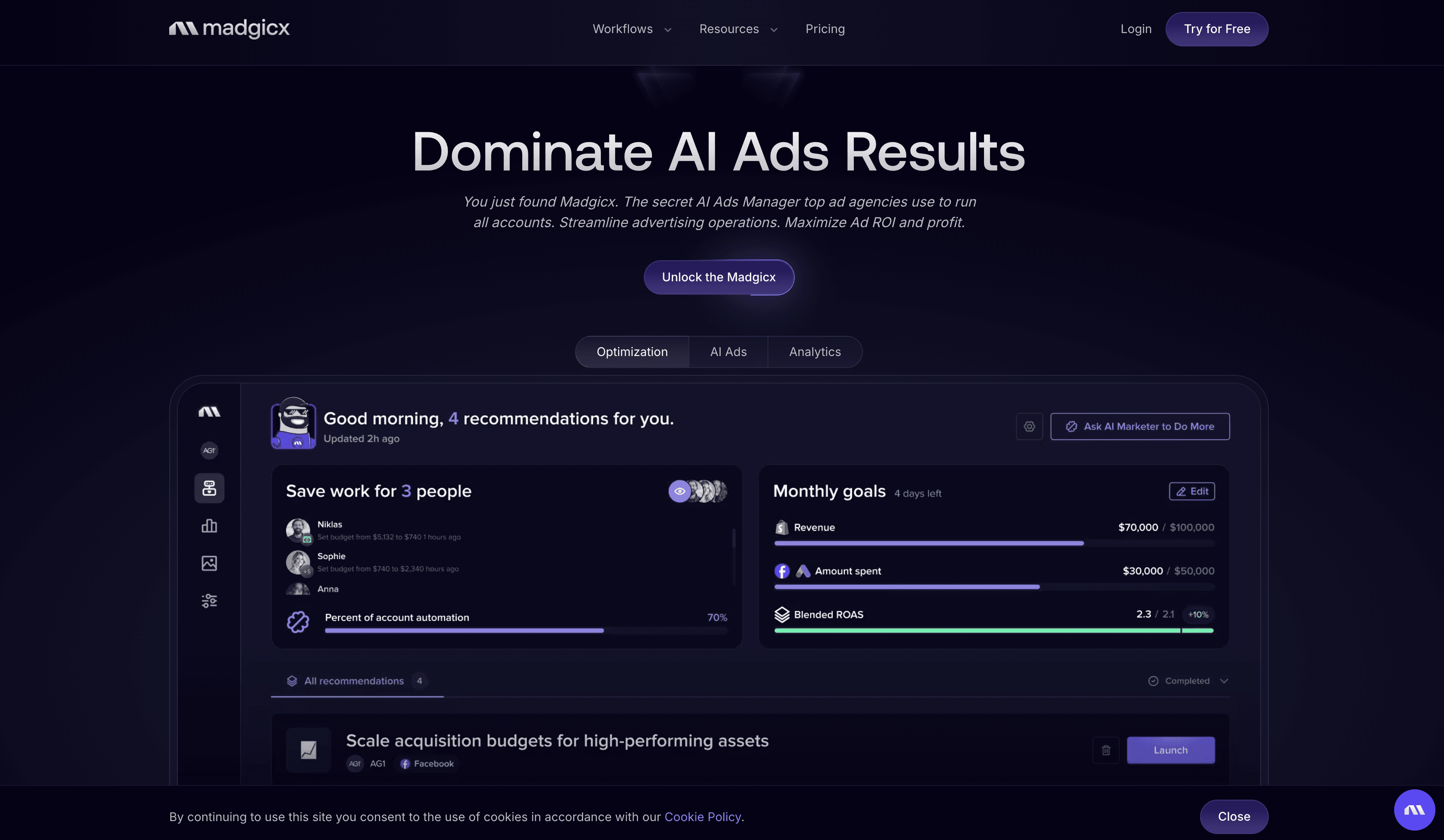 Metaflow AI is the ideal fit for marketing teams managing multiple ad accounts, seeking to automate paid social workflows, and needing support for creative production, campaign optimization, and performance analytics across platforms.