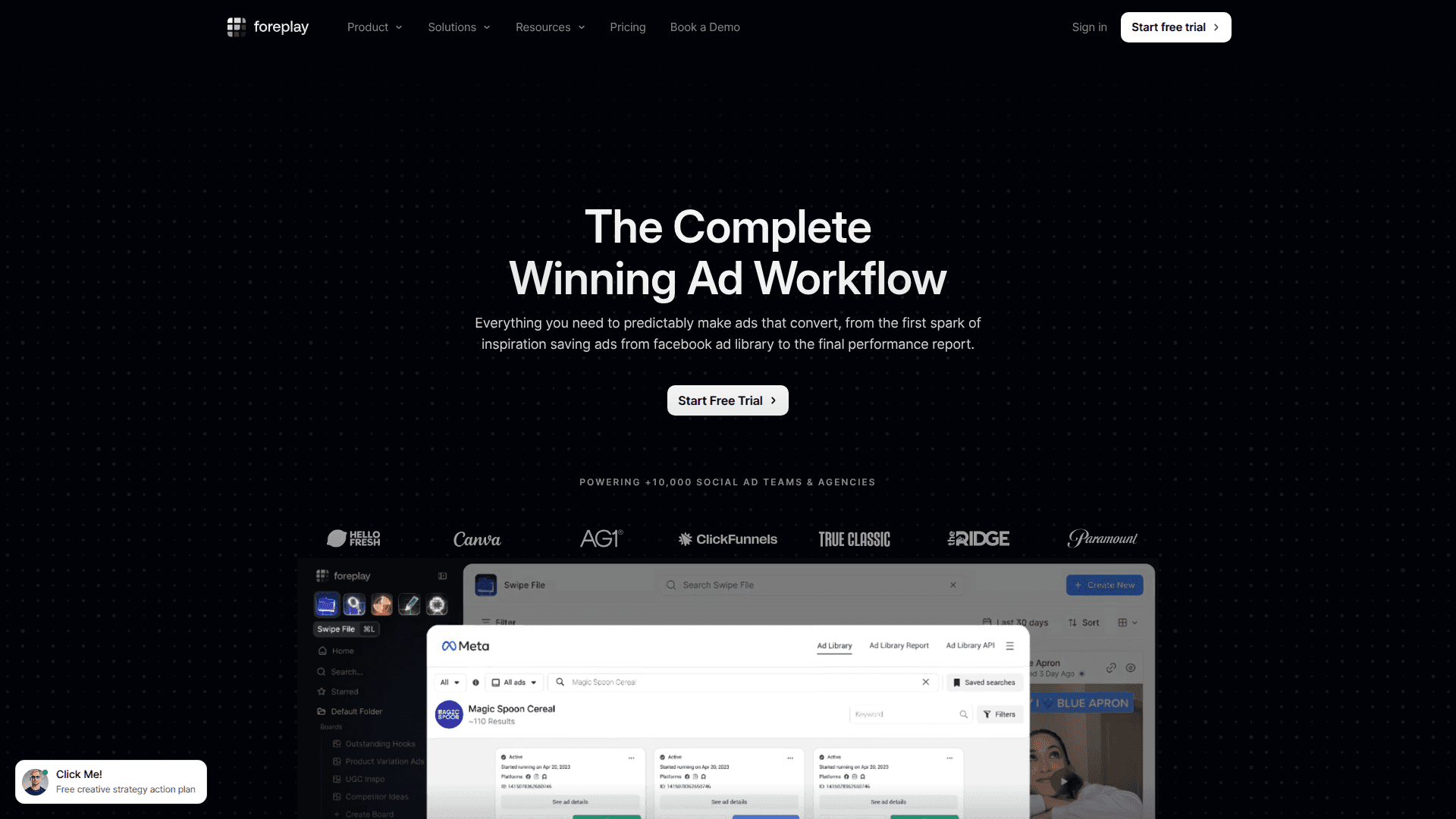 Foreplay provides a massive, searchable ad library with over 500,000 paid ads, advanced tagging, and collaborative boards. It's designed for paid social marketing teams seeking organized inspiration and efficient creative research, integrating with Facebook, TikTok, Instagram, LinkedIn, and Pinterest ad libraries. The platform helps teams identify winning creative patterns, organize assets for campaign briefs, and generate insights that inform content production and testing strategies.