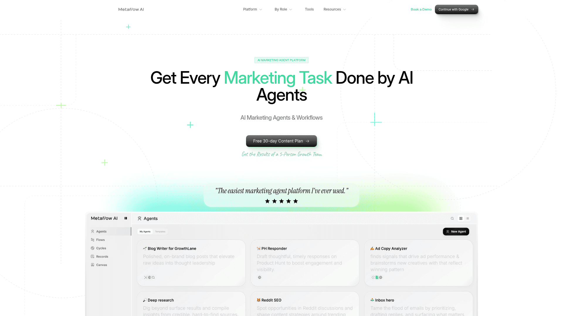If you're a B2B SaaS marketer looking to automate and scale paid social workflows without building brittle integrations, Metaflow AI is purpose-built for orchestrating multi-step, AI-powered growth systems (no developer required). It acts as the connective tissue for campaign ops, content workflows, and performance insights, letting your social stack scale efficiently. Designed for recurring tasks like creative refreshes, audience research, and reporting, Metaflow helps teams launch campaigns faster while maintaining control over creative direction.