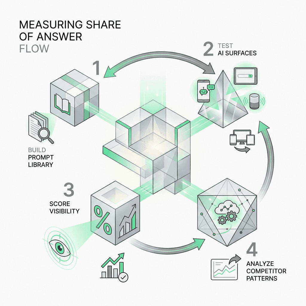 Measure before you enhance—build a prompt library, test across platforms, track Share of Answer over time