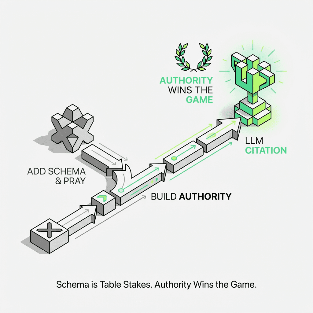 Schema markup is table stakes. Citation-worthiness is the competitive advantage.