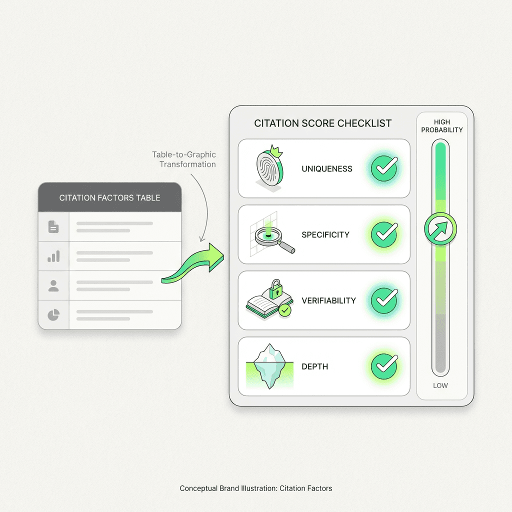 Citation-worthy content is (1) unique (original frameworks, first-hand insights, or proprietary data), (2) specific (clear, concrete claims and steps), (3) verifiable (credible references, stats, and attribution), and (4) deep enough to handle follow-up questions. If your article reads like a generic "10 tips" rewrite, LLMs have little reason to cite it over competitors.