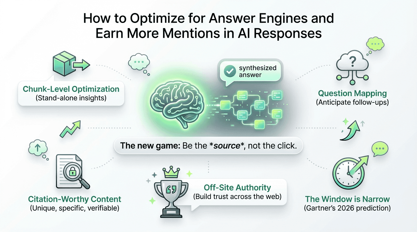 The shift is existential, not just technical. For two decades, SEO meant getting users to your site. Answer Engine Optimization means becoming the source LLMs trust when they synthesize answers. The companies that understand this aren't just adapting tactics. They're rethinking the entire value chain of digital marketing.