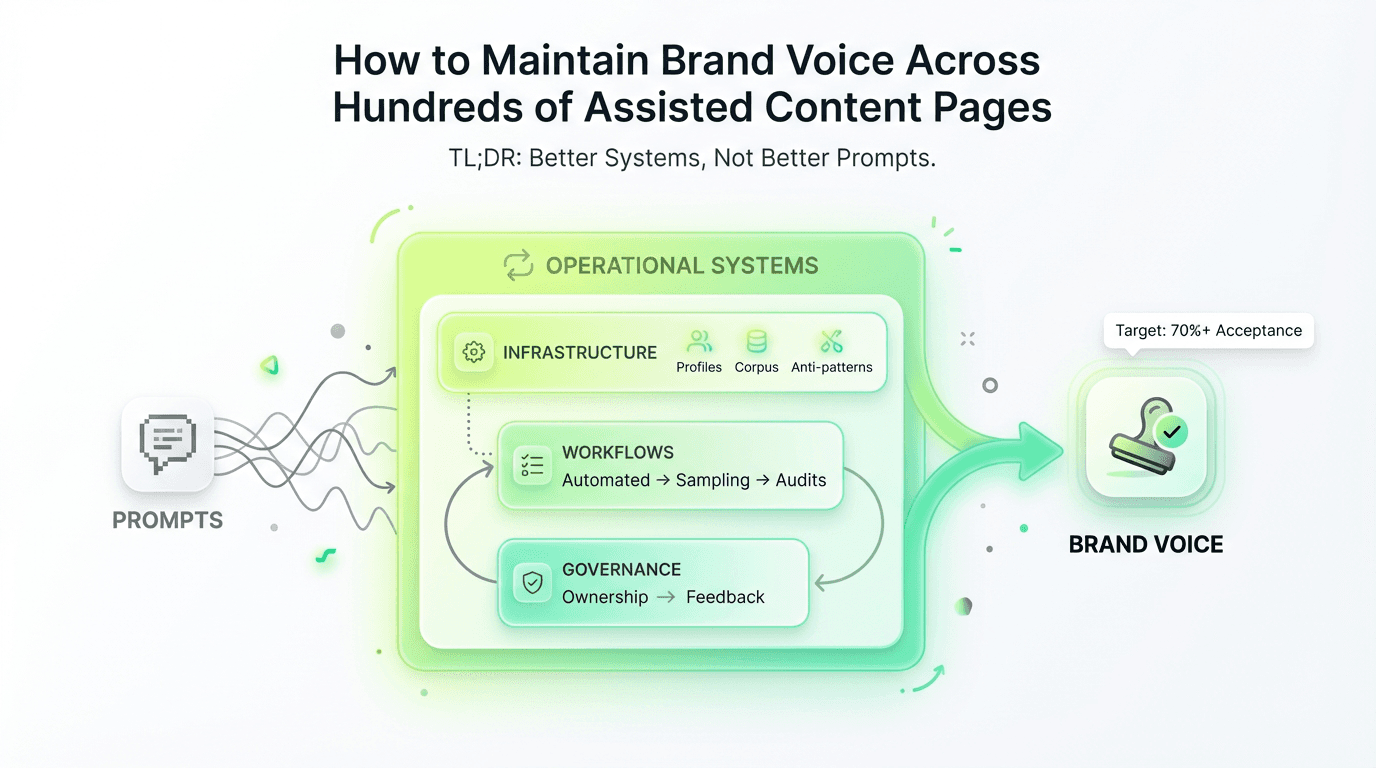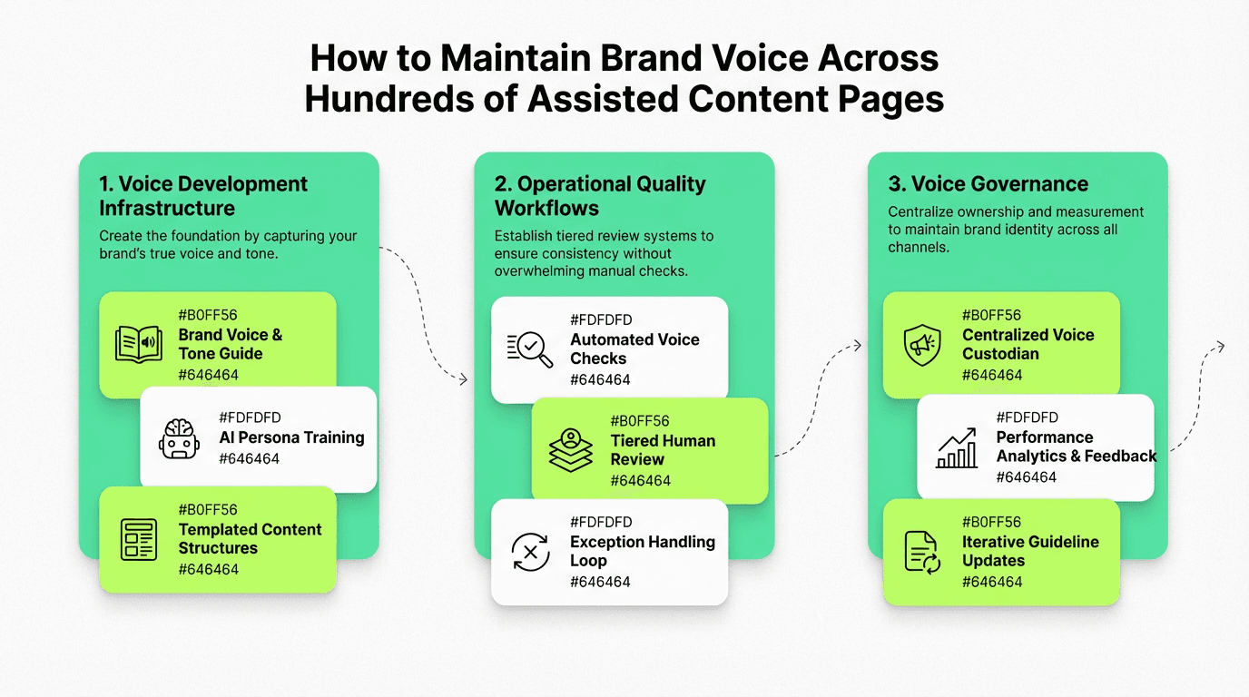 What does it mean to maintain brand voice across hundreds of assisted content pages?