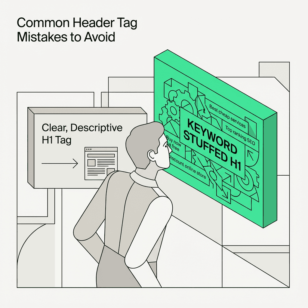 Common mistakes include using multiple h1 elements, vague header tags, keyword stuffing, skipping heading levels, and ignoring accessibility—avoid these to maximize impact and rank higher.