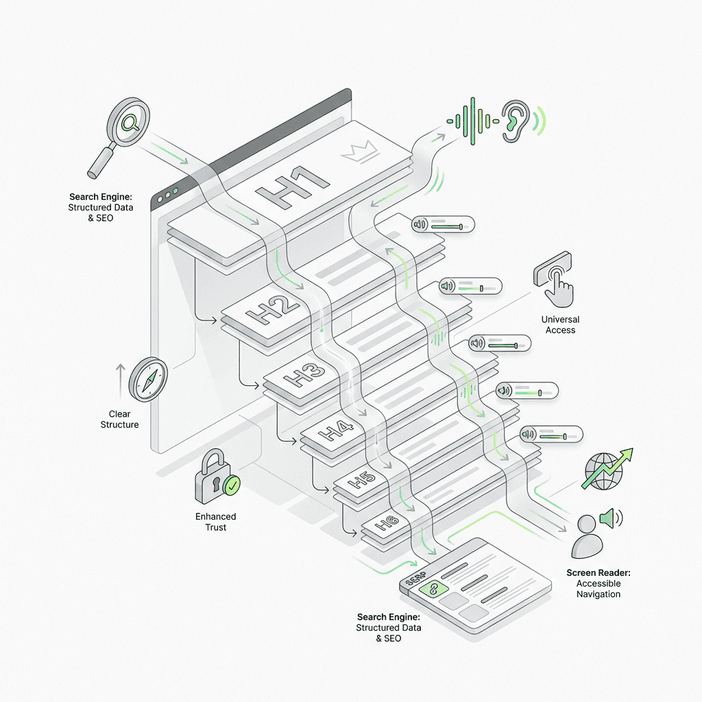 Your main heading is just the beginning. To create scannable, search-friendly pages, you need a logical heading structure that flows from H1 → H2 → H3 → H4 (and so on).