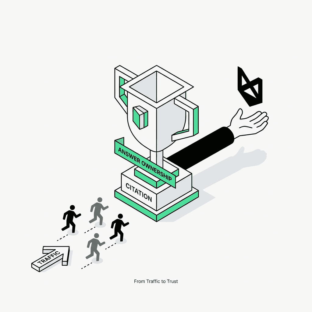 This changes everything about digital marketing strategy. It should reframe your ai marketing strategy around answer ownership, not rankings. The question is no longer "What keywords should we rank for?" It's "What questions should we own the answer to?"