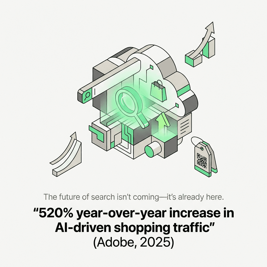 520%: Year-over-year increase in AI-driven shopping traffic showing impact of generative search (Adobe, 2025)